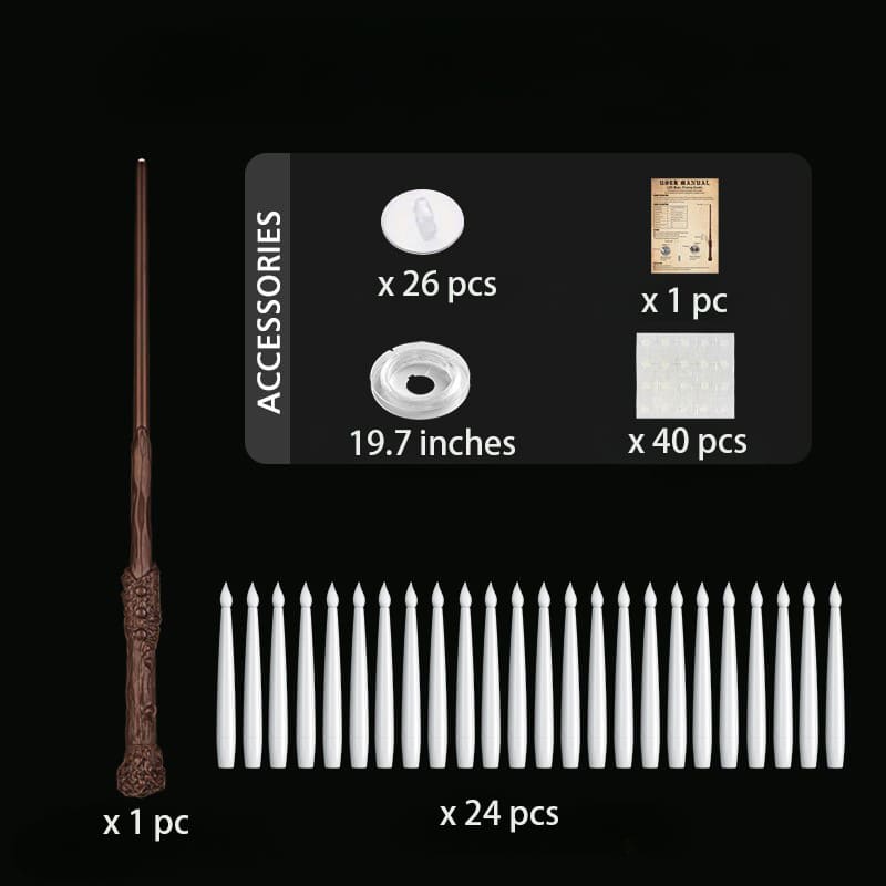 Turn your space into a wizarding world with 24 pcs floating LED candles and a magical 13.8 inches wand remote. Just wave and watch the candles glow. Fun, immersive, and perfect for setting the scene at any festive gathering.