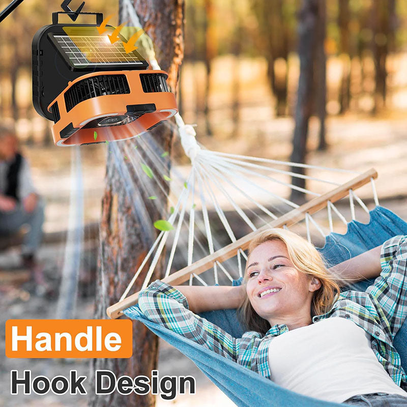 Say goodbye to sweltering outdoor, iToolMax solar camping fan combines a cooling fan, bright LED light, and a reliable power bank, can be solar-powered for freedom off the cable. Foldable and lightweight, perfect for camping, hiking, emergency kits, or backyard relaxing.