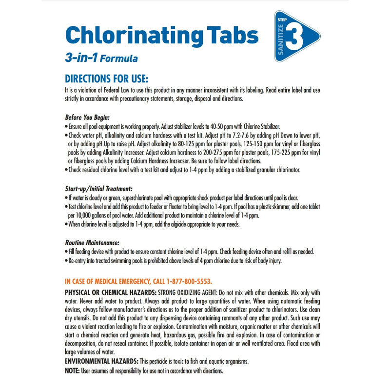 With these easy-to-use chlorine-based tabs, kills algae and bacteria, prevents equipment corrosion, scale and stains. Protect your swimming pool and enjoy clean, clear water.